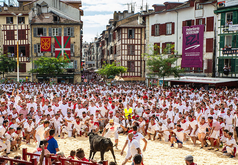 Betidanik, Baionako lagun taldeak San Andres en elkartzen dira ganaduari aurre egiteko. Behiaren inguruan korrika egitea, hura saihestea, makurtzea, salto egitea, baina animalia errespetatzea da ohikoen kredoa. Atzerritar sinesgaitz asko jolasean hartzen dira eta haien zortea adarretatik ahalik eta hurbilen izaten saiatzen dira. Komeni da gogoan izatea arriskua beti hor eta etengabe dagoela, abiadura betean dagoen 250 kilotik gorako behi batek kalte handiak eragin baititzake. Kontuz ibili !