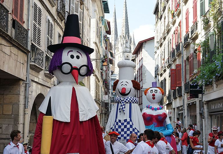 Ziganteak 10:00etan elkartzen dira Albert I eskolaren aitzinean, Jacques Portes plazan. Ibilaldia egiten dute eta eguerdian heltzen diraAskatasunaren plazara, erregearen esnatzea laguntzeko.Tipi Tapa elkarteko kideek eramanik, gaiteroen soinuetara ibiltzen dira handik eta hemendik. Ziganteek hiriko pertsonaia enblematikoak sinbolizatzen dituzte : bufoia besta-alderdiagartik, marexala ordena publikoaren errespetuarengatik, txokolategilea, Baionako tradizio gastronomikoari erreferentzia eginez, etxezaina eta medikua, ongizatearen eta osasun onaren bermatzaile eta, azkenik, gogokoena… zeren eta errege guztiek bat dutelako.Or Konpon elkarteko kideek gidatutako proiektu batetik sortu ziren Léon eta bere gortea. Orduan, Jean Duverdier marrazkilari baionarrak moldatu zituen pertsonaiak.