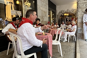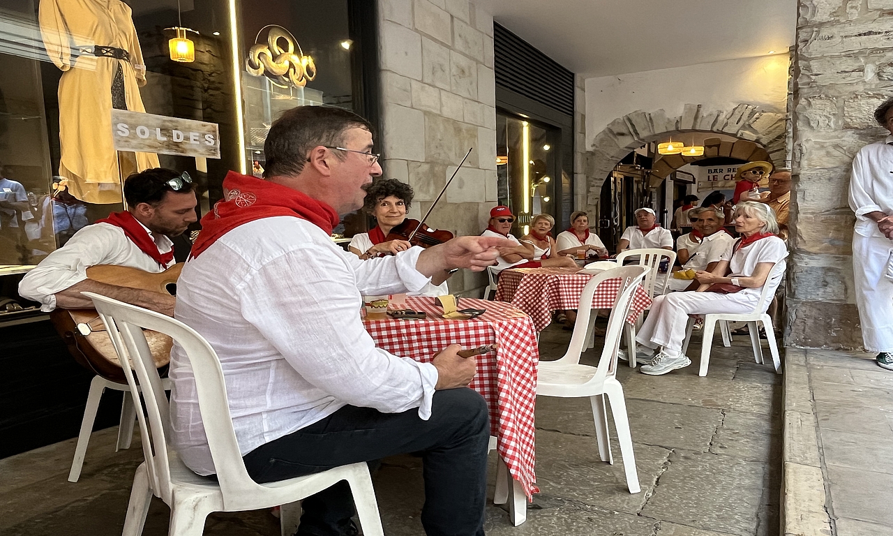 Concert acoustique sur une terrasse de restaurant du Grand-Bayonne © Ville de Bayonne MusiqueAu bonheur de l'acoustiqueDepuis plusieurs années, la sonorisation des Fêtes est suspendue le jeudi, pour le bien-être auditif du plus grand nombre. En 2025, 25 bandas sillonnent les rues de Bayonne, en plus des petits concerts organisés sur les terrasses des restaurants.Data honetan argitaratua 10 July 2025 Berri guziak