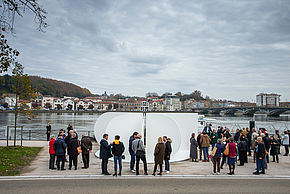 "Egun on Baiona" a trouvé sa place en bord d'Adour © Ville de Bayonne - Mathieu Prat CultureLa sculpture monumentale "Egun on" installée quai PedrosImaginée par Nestor Basterretxea pour Bayonne avant son décès en 2014, la sculpture monumentale "Egun on" a été installée sur le quai Pedros samedi 13 novembre.Data honetan argitaratua 15 November 2021 Berri guziak