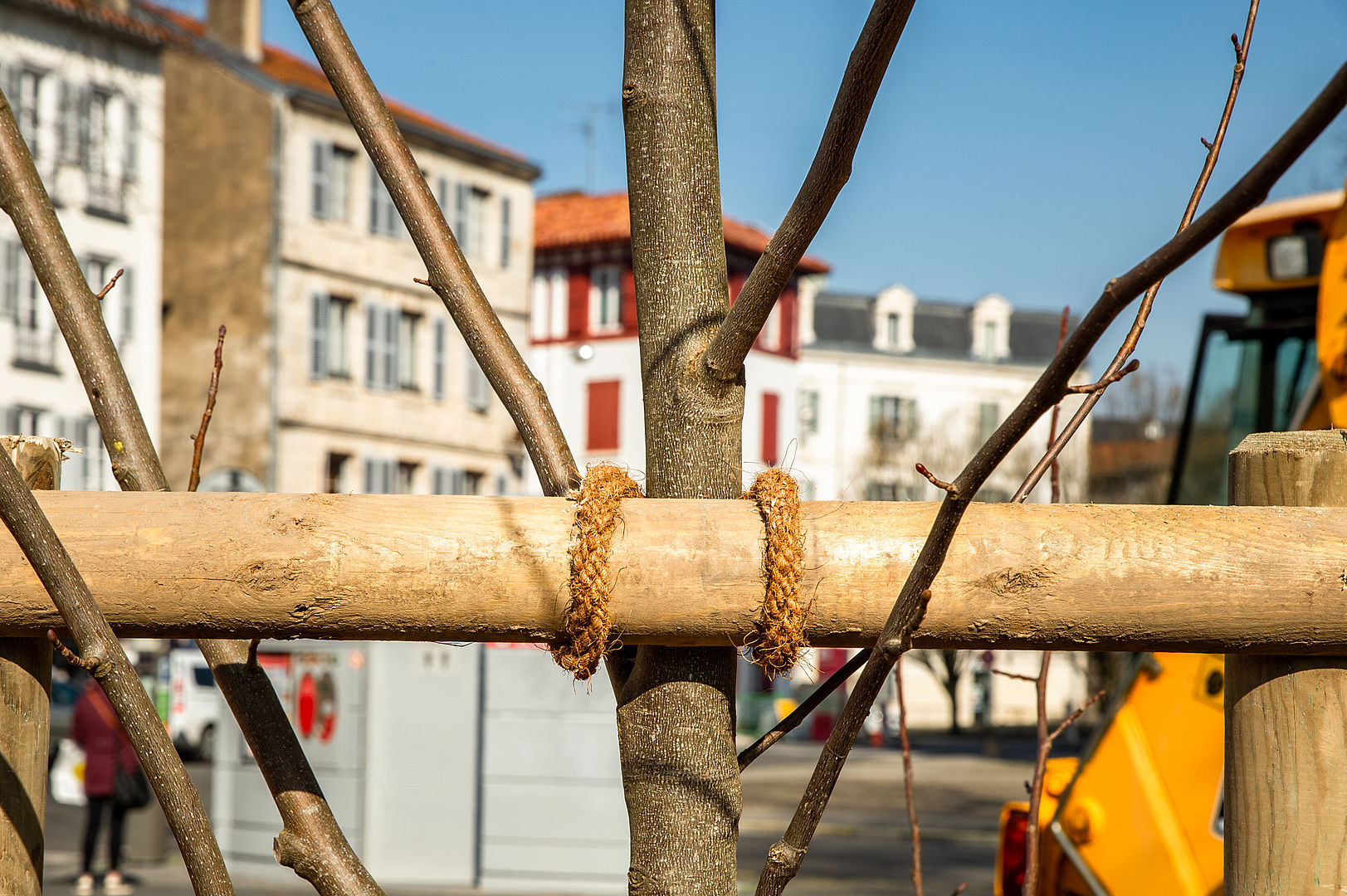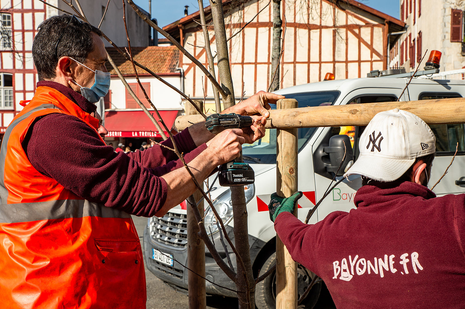 Gutienez metro bateko zabalera duen hobi zabala zulatua da zuhaitz bakoitzerako, arro ttipiaren sortzea aurreikusten duen metodoaren arabera. Motzondoaren inguruan ura atxikiko du, erroak behar bezala murgiltzeko. Gutienez ehun litro behar dira lehen ureztatze horrentzat sustrai eta lurraren arteko aire putzuak saihesteko, usteltzea eta onddoak ekartzen baitute. Ondotik, lurra eta mota bakoitzari egokitu lurbeltzarekin nahasirik betetzen da hobia, bi edo hiru zangoko zurkaitza lekuaren araberan finkatu aitzin. Lehen bi urteak landarearen garapen onerako funtsezkoak dira : zurkaitza egokitua izanen da ere estresa eta orbainak saihesteko. Saski itxura ukan dezan moztua izanen da zuhaitza eta nasaiki ureztatua. Naturalki garatzen uzteko, zainketa bi urteren buruan geldituko da. Lorezainen begi zorrotzak segida hartuko du orduan : bere haztea eta osagarria zainduko dituzte.