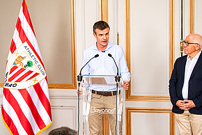 « 14 hilabete daramatzagu lanean, eta behin eta berriz eskerrak eman nahi dizkizuegu, zuek, profesionalak, maila honetara iristeko aukera eman diguzuenei, baita jokalari eta haien familiei ere, eta Lezama zuen zerbitzura dagoela erratea », adierazi zuen Jon Uriartek sinadura ekitaldian. « Athleticeko arrakasta zuen arrakasta da! »