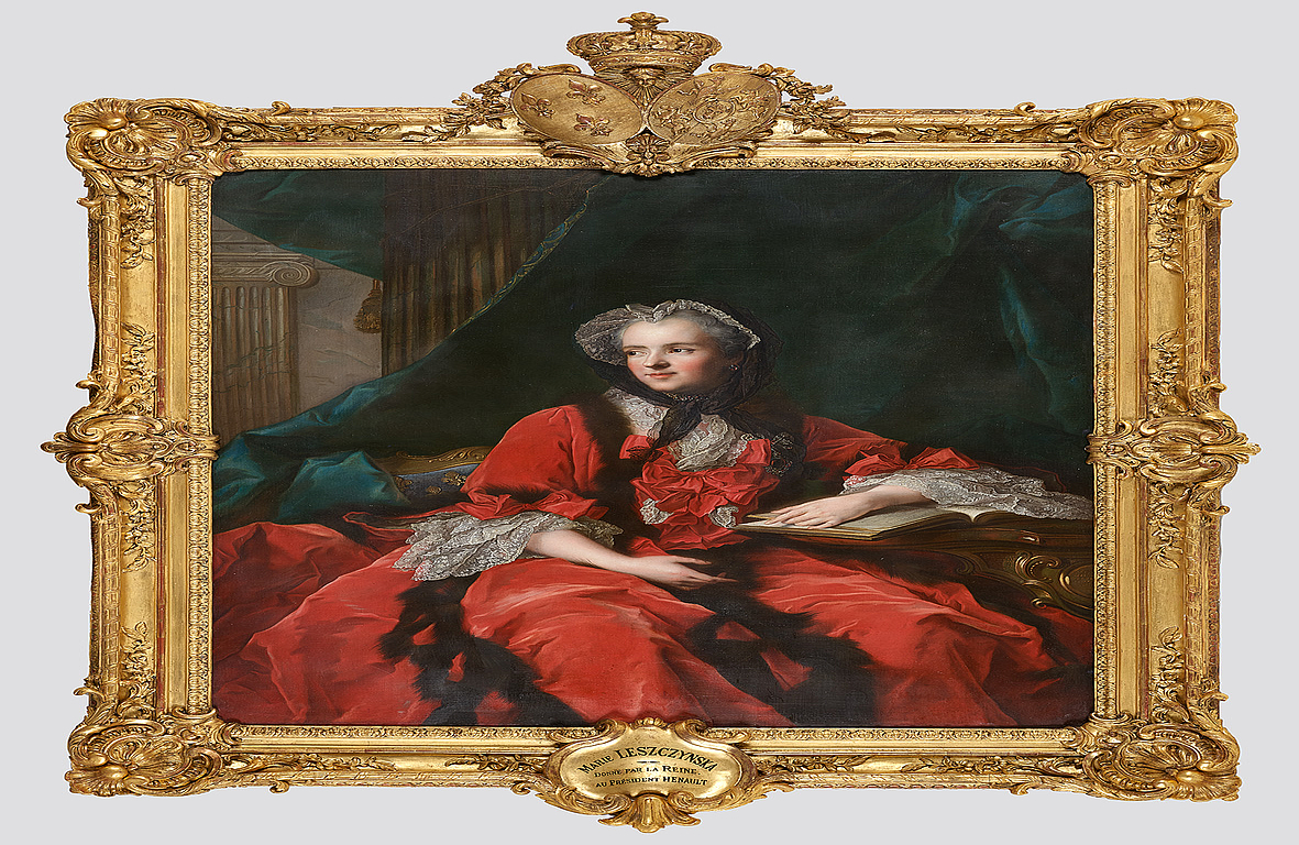 Errege familiaren erretratugile ofiziala zen Jean-Marc Nattier-ri hainbat bertsiotan manatua, erretratu honek ñabardurak ditu. Lehen bertsioak, Versailles-eko gazteluaren jabetzakoa denak, erregina Biblia eskuetan duela irudikatzen du, bere izaera oso jainkozalearekin erabat datorren jarreran. Bonnat-Helleu museoan denak, berriz, filosofia liburu batekin irudikatzen du; xehetasun zentzuzkoa, Marie Leszczcynska-k margolan hau bere Lumières-engandik hurbil zen lagun eta konfidente Charles-Jean-François Hénault idazle, poeta eta magistratuari eskaini baitzion.