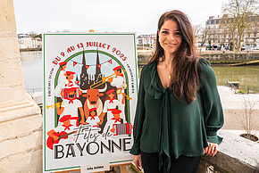 Afitxa oinarrian uztai bat duela eraikia da, Baionako erdigune zaharreko zenbait karrikari erreferentzia eginez. Testuaren parte bat goiko aldean da, letra lodiz azpimarratua eragin retroa indartuz.