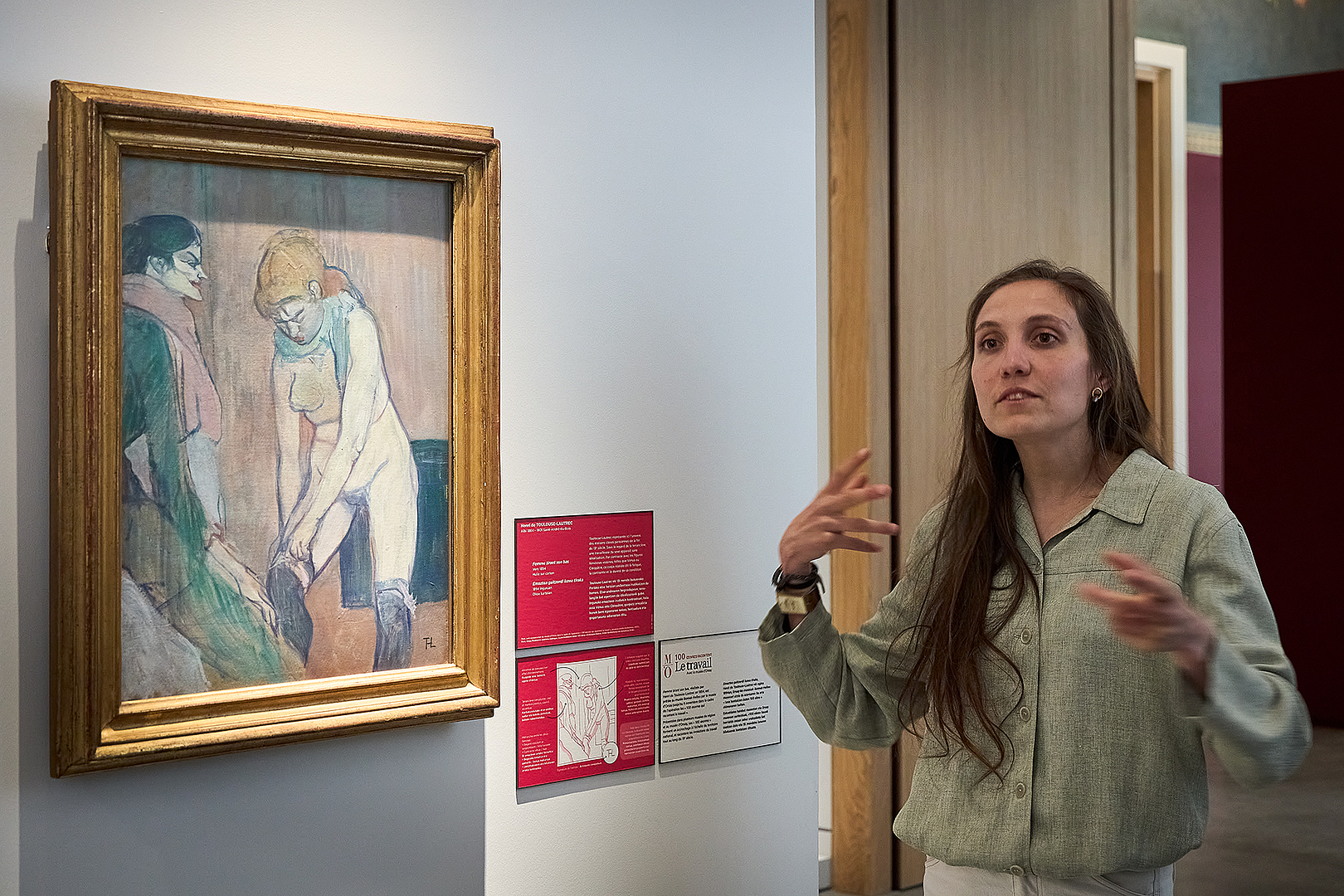 Garai eta gizarte baten lekuko, obra honek lan baten errealitatea kontatzen du —sexu-lana—, onartua zena “etxe -hetsietan” emazteek kudeatzen zituztenean bakarrik, eta hori 1946 arte. Hori gorrixka ileko emazte baten gorputz biluzia, galtzerdi eta lepoko zapi batez jantzia, lan astunak dakarren kargaren azpian makurtzen da. Aurpegi ilun, azala berde-xuria eta pixka bat grisatua, bularra eroriz, nekea eta asperdura baten adierazgarri dira. Gainera, nagusi emazte baten menpe da, beroki bero batez jantzia eta begirada goibeltasunez betea. Langilearen biluztasuna errealismoz irudikatzen da, neholako sexu-itxurarik gabe. « Hélène Ferron-ek azaltzen duenez, Henri de Toulouse-Lautrec-ek ez zuen nehoiz ez sexu-eszena bat irudikatzen. Emazteen errealitate soziala deskribatzen zuen, finantzazko menpekoak eta ahulak zirenak. Obra gorputzei eskainitako gelan zintzilikatzea erabaki dugu, non greziar eskulturekin elkarrizketan ezartzen den, beren edertasun akademikoari erreferentzia eginez, baina tratamenduagatik erabat desberdina izanik. »