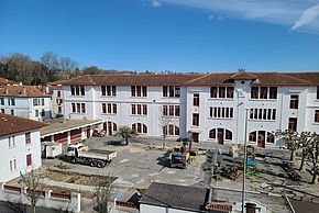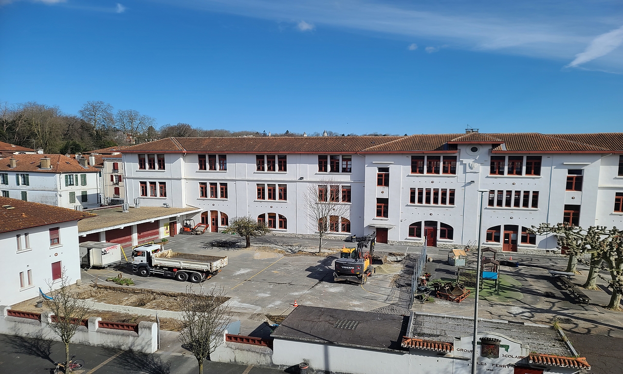 Lanak, eskoletako oporren lehen egunean otsailaren 24an, astelehenarekin, hasi dituzte. Martxoaren 10ean, sartzearekin geldituak izanen dira, apirila bukaeran berriz hasteko. 170 000 € inbertituko ditu Hiriak egokitzapen horretarako, eta horiei 60.000 € gehituko zaizkie Esté karrikaren aldean sarrera bat sortzeko, benetako plus bat ikasleen sartze/ateratzeak segurtatzeko eta lehen hezkuntzako eta oinarrizko hezkuntzako eskolako atari amankomun bat sortzeko.
